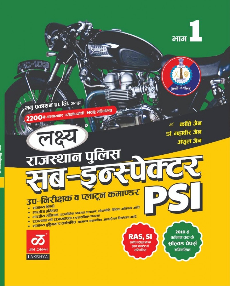 राजस्थान पुलिस PSI सब-इंस्पे कूट (Sub-Inspector) भाग 1 LAKSHYA BOOKS MANU PRAKASHAN PVT. LTD. (IAIPUR क्रांति जैन महावीर जी अंशुल जैन